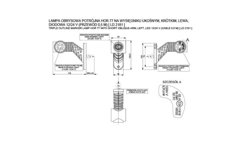 Die Horpol MB-4862RWA aus der MB-4800 serie ist eine LED Begrenzungsleuchte mit einem robusten Gehäuse aus Gummi und einer stoßfesten Linse aus Polycarbonat. Diese Begrenzungsleuchte ist für Fahrzeuge mit einem Spannungsbereich von 12-24 V geeignet und verfügt über ein offenes Kabelende mit einer Kabellänge von 50 cm. Dank ihrer kompakten Abmessungen von 125x110x55 mm lässt sich die Begrenzungsleuchte leicht an verschiedenen Fahrzeugtypen montieren.