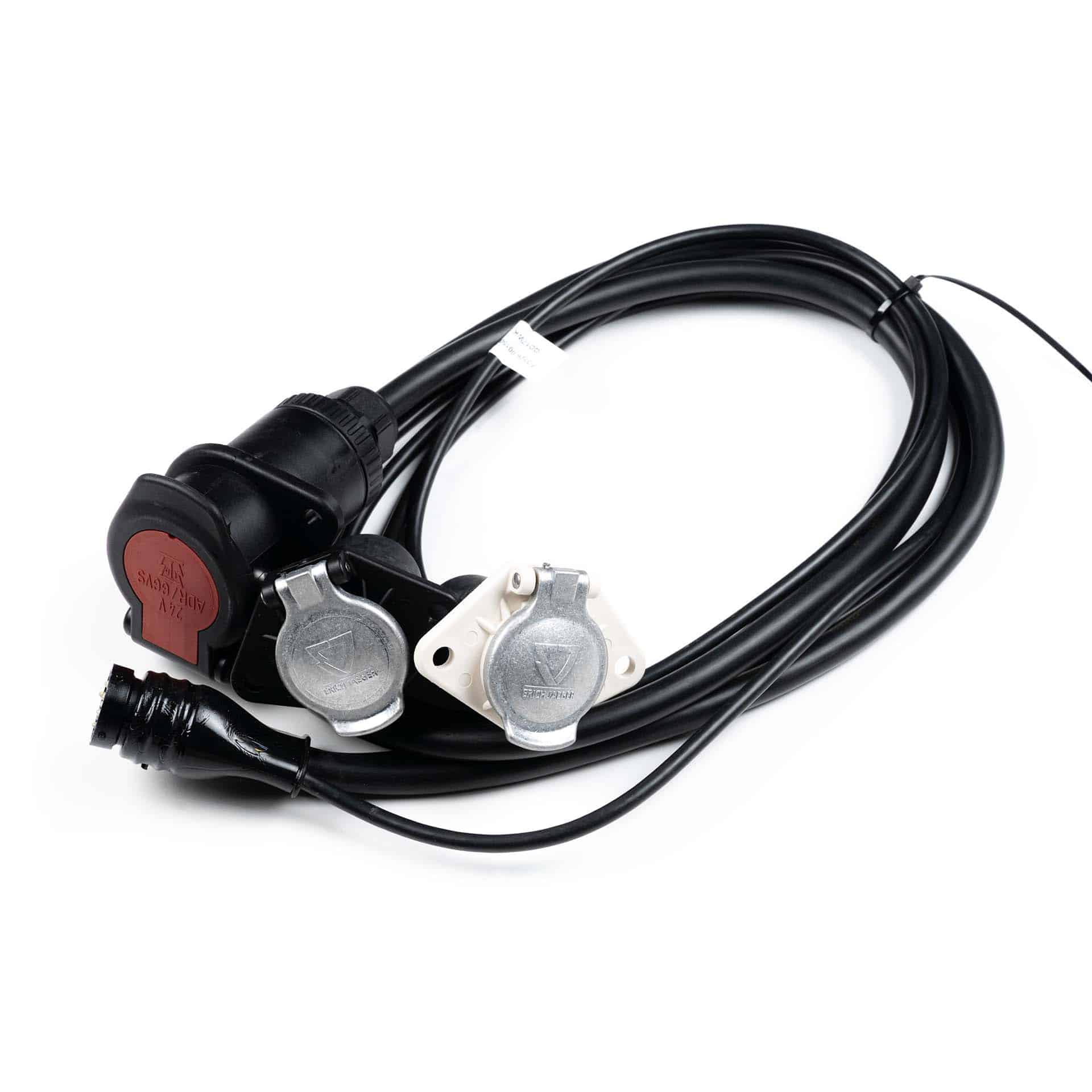 Dieser Kabelbaum von TRALERT® entspricht der CE- und ADR-Zertifizierung, was seine Anwendung in Straßenfahrzeugen und im Gefahrguttransport unterstützt. Das Design ist auf eine zuverlässige Signal- und Stromübertragung zwischen Lkw und Anhänger gemäß den Industriestandards ausgerichtet.