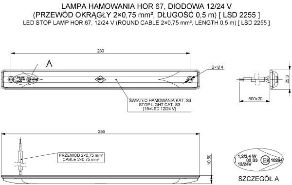 Das Horpol V3R-255 ist ein kompaktes LED Rücklicht für den Einsatz an Fahrzeugen mit einem Spannungsbereich von 12-24 V. Dieses Modell ist mit der Funktion Bremslicht ausgestattet und verfügt außerdem über einen integrierten Reflektor. Dank seines schlanken Designs von 255x25x11 mm eignet sich dieses LED Rücklicht für die Montage an Stellen mit begrenztem Einbauraum, zum Beispiel über oder unter einem Nummernschild.