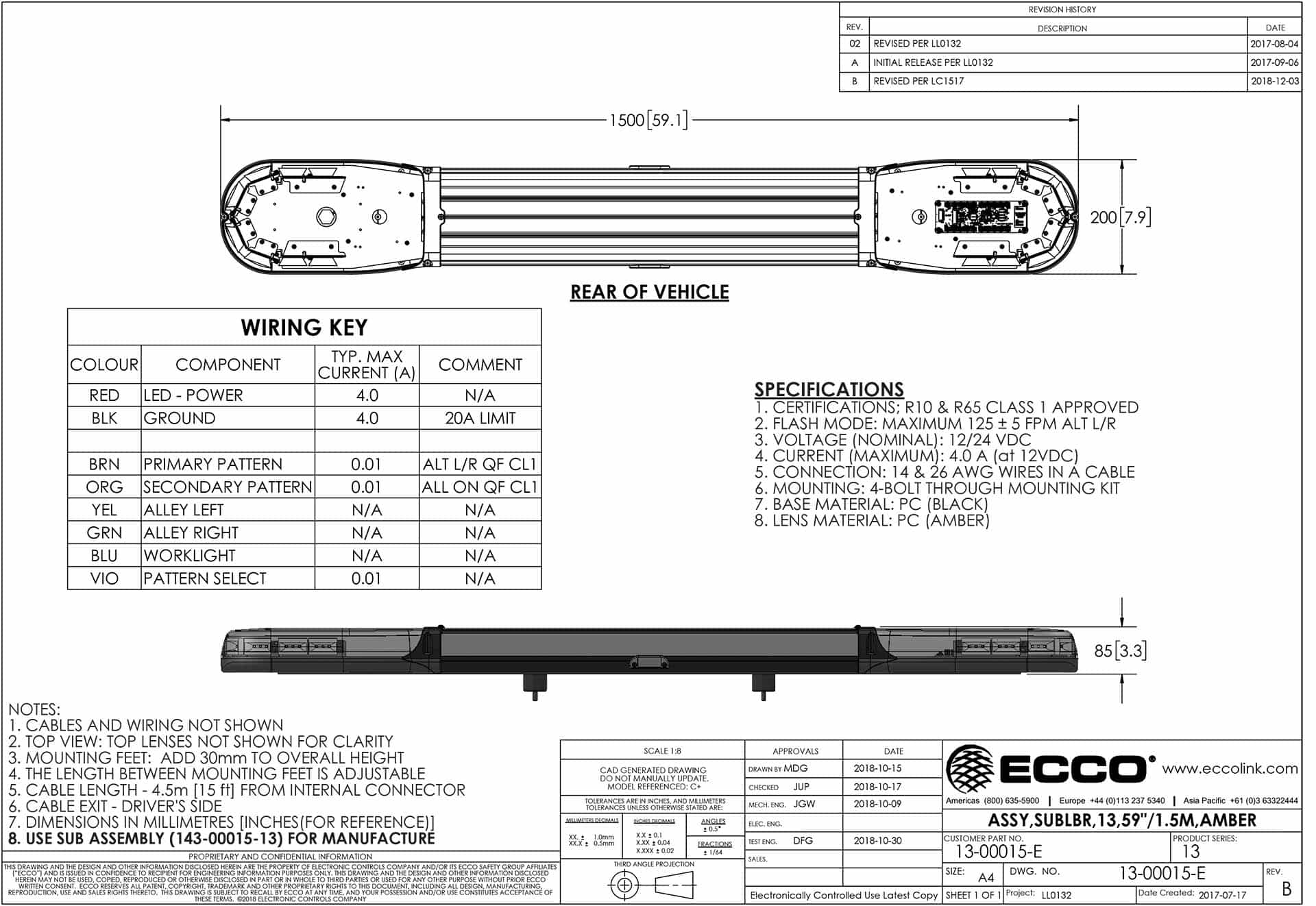 Der ECCO ESG 13 serie Ecco ist ein robuster LED Leuchtbalk für Fahrzeuge mit einer Nennspannung von 12-24 V. Diese Version hat eine Länge von 1.500 mm und ist mit einem aluminium und einer schlagfesten Polycarbonat Linse aufgebaut. Die frei einstellbare Halterung ermöglicht die Anbringung an einer Vielzahl von Fahrzeugen. Das Gerät ist mit einem 450 cm langen Kabel mit offenem Kabelende für einen einfachen elektrischen Anschluss ausgestattet.