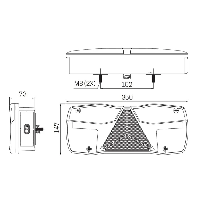 Dieses LED Rücklicht vereint die Funktionen: Rücklicht, Bremslicht, Blinklicht, dynamisches Blinklicht, Nebelscheinwerfer, Rückfahrlicht und Kennzeichenbeleuchtung. Das Gerät verfügt über einen ASS2-Stecker. Dieses Modell erfüllt die Anforderungen von CE, ECE R10, R3, R4, R6, R7, R23, R38 und R91 und ist mit der Schutzklasse IP67 zertifiziert.