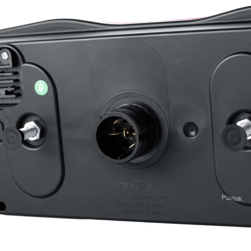 Das Gehäuse besteht aus Polypropylen mit einer Linse aus PMMA, was zu seiner Stoßfestigkeit und Langlebigkeit beiträgt. Die IP67-Einstufung bedeutet volle Staubdichtigkeit und Schutz gegen Untertauchen. Das Rücklicht ist nach mehreren ECE-Richtlinien zugelassen, darunter ECE R10, R3, R4, R6, R7, R23, R38 und R91. Der ordnungsgemäße Betrieb wird außerdem durch die Verwendung eines ASS2-Steckers unterstützt, der Kompatibilität mit verschiedenen Fahrzeugsystemen bietet. Die Montage erfolgt durch Aufputzmontage unter Einhaltung der Abmessungen von 356x147x73 mm.