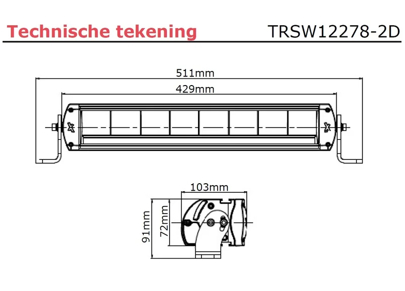 Die Abmessungen betragen 429x72x103 mm. Die LED bar Lightbar verfügt über einen 3-PIN Deutsch Stecker mit 40 cm Kabel und ist für die Aufbaumontage vorgesehen. Die Zertifizierungen CE, ECE-R10, ECE-R112 und ECE-R7 bestätigen die Eignung für den professionellen Einsatz unter verschiedenen Bedingungen.