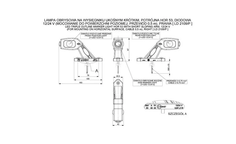 Die MB-3661RWA aus der MB-3600 serie von Horpol ist eine kompakte LED Begrenzungsleuchte, die für den Einsatz an Fahrzeugen im 12-24V Bereich geeignet ist. Die Lampe kombiniert die Funktionen: hintere Positionsleuchte und Seitenmarkierungsleuchte. Dank der roten, weißen und amber LED ist die Sichtbarkeit der Fahrzeugkontur in verschiedene Richtungen gewährleistet.