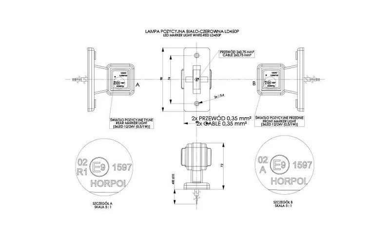 Das Horpol MB-4632RW aus der MB-4600 serie ist eine LED Begrenzungsleuchte, die für den Einsatz an Nutzfahrzeugen, Anhängern und 12V-Anhängern geeignet ist. Dieses Modell bietet eine Kombination aus einer roten und weißen Lichtfunktion und erfüllt damit die Funktion einer Positionsleuchte. Die Begrenzungsleuchte wird mit einem 40 cm langen Kabel geliefert und hat ein offenes Kabelende als Stecker.