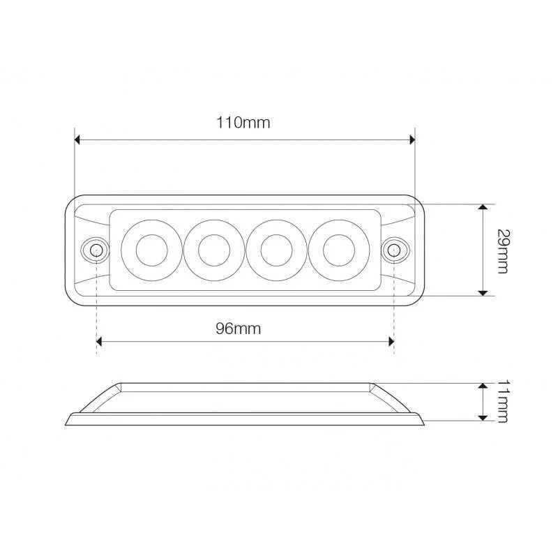 LED Blitzer 4 LEDs | R10 | slimline | weiß 10-30v | SLED4DVW