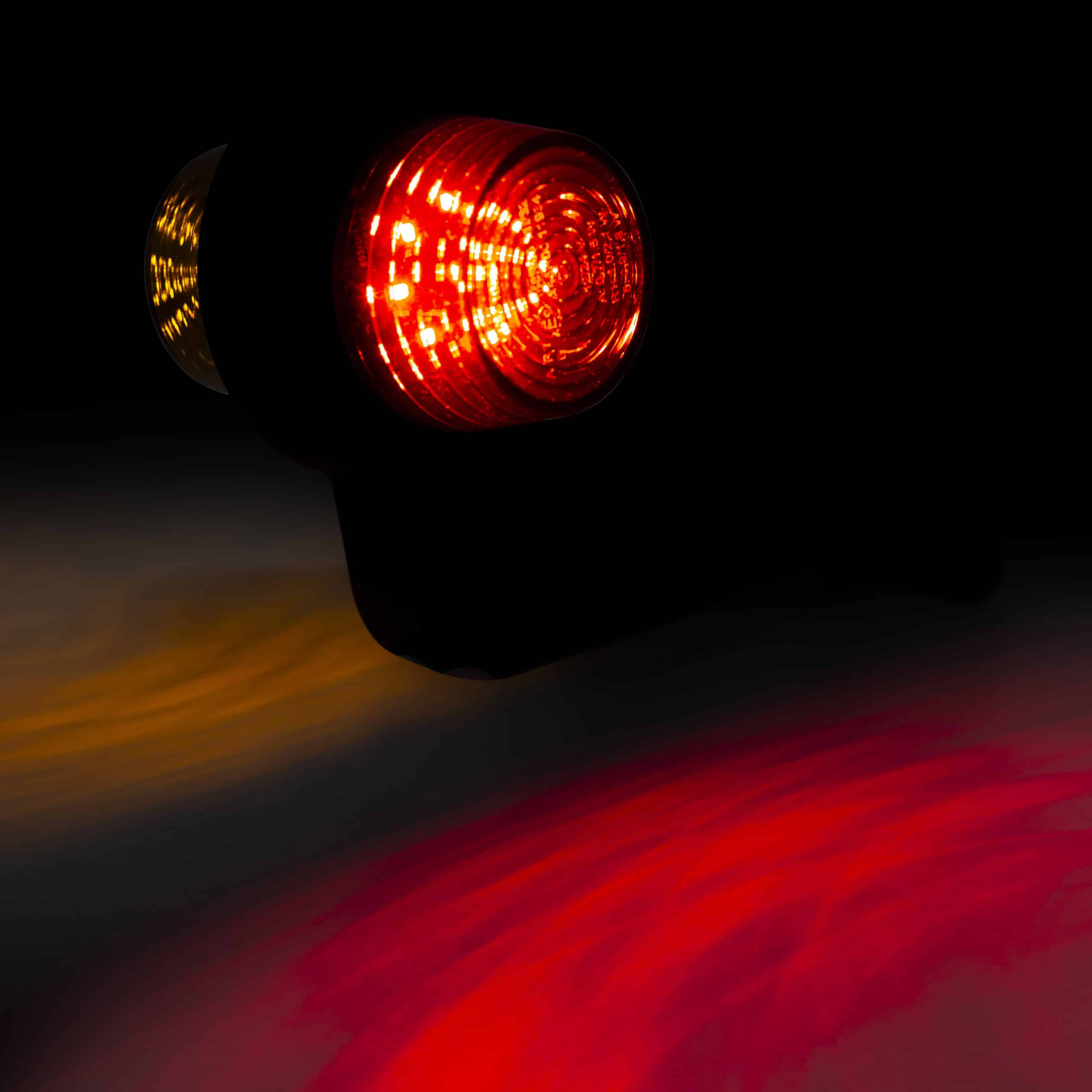 Die LED Begrenzungsleuchte wird mit einem abgewinkelten Griff geliefert und verfügt über ein 50 cm langes Kabel mit offenem Kabelende für den direkten Anschluss. Mit Abmessungen von 192,5 x 168 x 87 mm passt dieses Modell gut auf verschiedene Arten von Lkw und Anhängern. Diese Version kombiniert ein amberfarbiges und rotes Lichtmuster und ist mit der Lichtfunktion: Umrissleuchte ausgestattet.