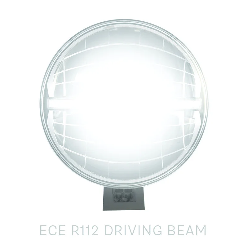 Der Fernscheinwerfer wird mit 12-24 V betrieben und liefert eine Lichtleistung von 1.000 lm bei einem Verbrauch von 25 W. Sowohl das Gehäuse als auch die Linse sind aus schlagfestem Polycarbonat gefertigt. Die runde Konstruktion hat eine Größe von ø226 x 114 mm und wird mit einem 60 cm langen Kabel mit offenem Kabelende für einen einfachen elektrischen Anschluss geliefert. Der Schutz gegen Staub und Untertauchen wird durch die IP67-Klassifizierung garantiert. Das Produkt ist zertifiziert nach CE, ECE-R10, ECE-R112 und ECE-R7.