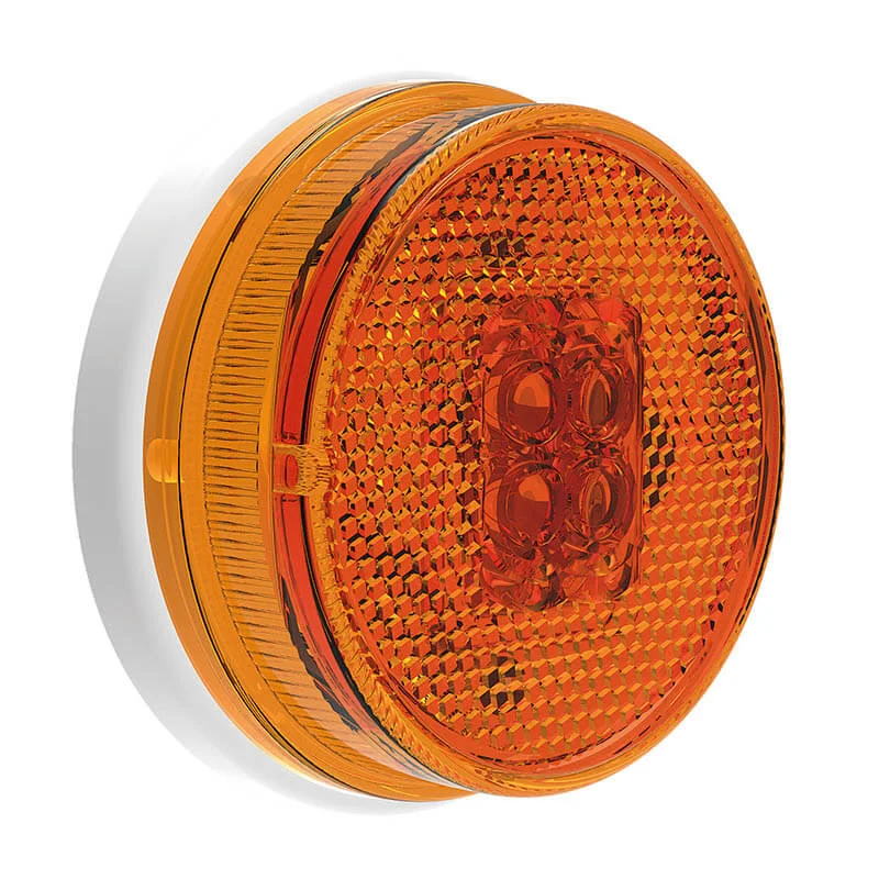 Die Fristom MV-1300 serie wurde als robuste Lösung in der Kategorie der LED Umrissleuchten entwickelt. Diese kompakte, gelbe Positionsleuchte verfügt über ein schlagfestes Gehäuse und eine Linse aus Polycarbonat und ist für einen Spannungsbereich von 12-24 V geeignet. Das Modell ist mit einem offenen Kabelende ausgestattet und wird standardmäßig mit 50 cm Kabel für eine flexible Installation geliefert. Dank seiner reflektierenden Komponente fungiert es auch als Reflektor und trägt so zur Sichtbarkeit und Verkehrssicherheit bei. Diese LED Umrissleuchte ist für verschiedene Fahrzeugtypen geeignet, bei denen eine kreisförmige Seitenbeleuchtung erforderlich ist.