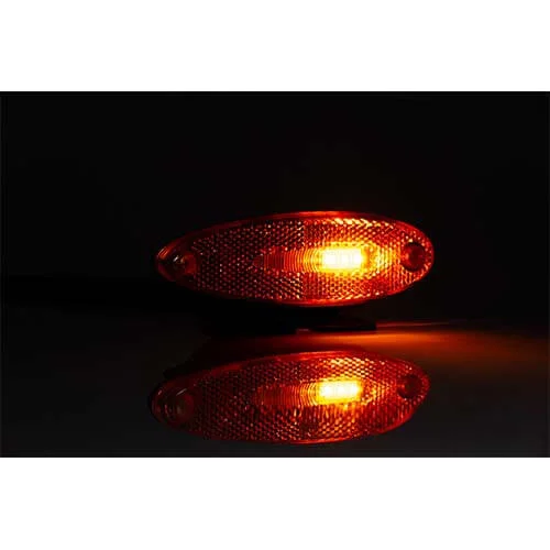 Die Linse besteht ebenfalls aus Polycarbonat, das sich für den langfristigen Einsatz unter verschiedenen Wetterbedingungen eignet. Diese Positionsleuchte entspricht den Richtlinien CE, ECE R10, ECE R3 und ECE R91 und kann somit im Straßenverkehr eingesetzt werden. Die amberfarbene Lichtleistung erhöht die Sichtbarkeit des Fahrzeugs, insbesondere bei schlechten Lichtverhältnissen.