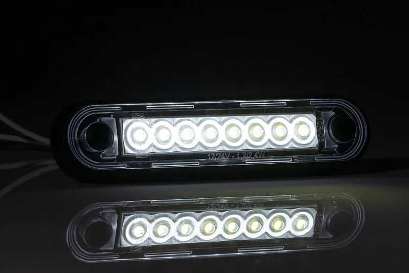 Diese weiße LED Positionsleuchte aus der MV-2400 serie Fristom ist sowohl für 12 V als auch für 24 V Systeme geeignet. Mit kompakten Abmessungen von 122 x 27,7 x 12,8 mm und der Möglichkeit des Einbaus und der Aufbaumontage bietet diese Positionsleuchte Flexibilität in verschiedenen Fahrzeuganwendungen. Das Gehäuse besteht aus Polycarbonat und Gummi und die Linse ist ebenfalls aus Polycarbonat gefertigt. Die Positionsleuchte ist mit einer Reflektorfunktion ausgestattet. Der Anschluss erfolgt über ein offenes Kabelende mit 15 cm Kabel. Dieses Modell erfüllt die Anforderungen von CE, ECE R10, ECE R148-A, ECE R148-ECE-R1 und ECE R148-SM1.