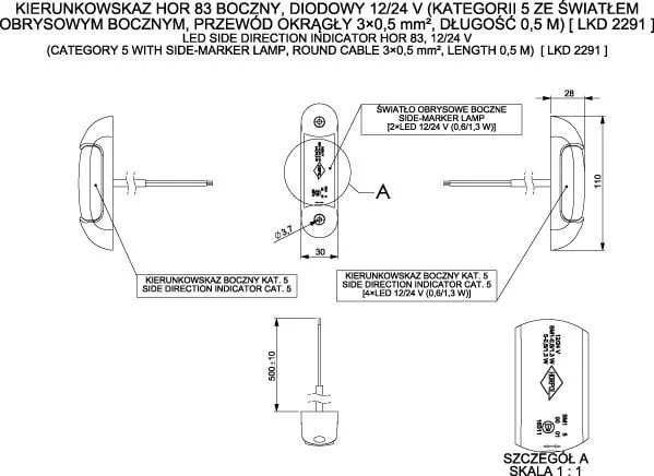Diese LED Umrissleuchten aus der MV-3700 serie Horpol sind für den Einsatz als seitliche Umrissleuchten mit Blinkfunktion konzipiert. Dieses Modell, Typ MZK-3710A, kombiniert die Funktionen: Seitenblinklicht und Reflektor. Dank seines Betriebs mit 12-24 V ist das Produkt für eine Vielzahl von Fahrzeuginstallationen geeignet. Das Gehäuse und die Linse bestehen aus stoßfestem Polycarbonat und halten einer langfristigen Beanspruchung unter verschiedenen Wetterbedingungen stand.
