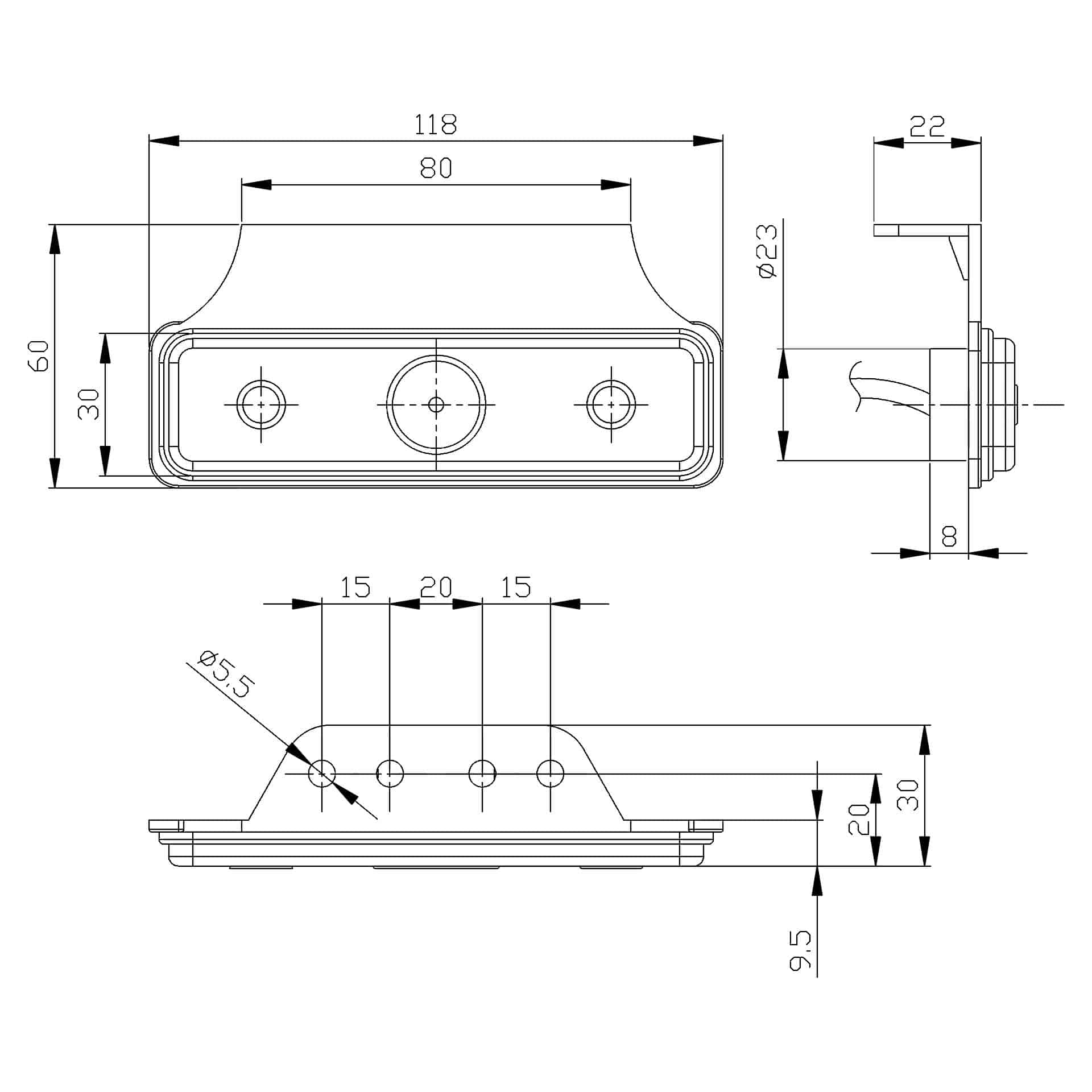 Diese LED Positionsleuchte entspricht den Richtlinien CE, ECE R10, R3 und R7. Die IP-Klassifizierung WATERPROOF zeigt an, dass das Produkt verschiedenen Wetterbedingungen standhalten kann. Mit einer Größe von 118x60x30 mm ist sie eine kompakte und effiziente Beleuchtungslösung.