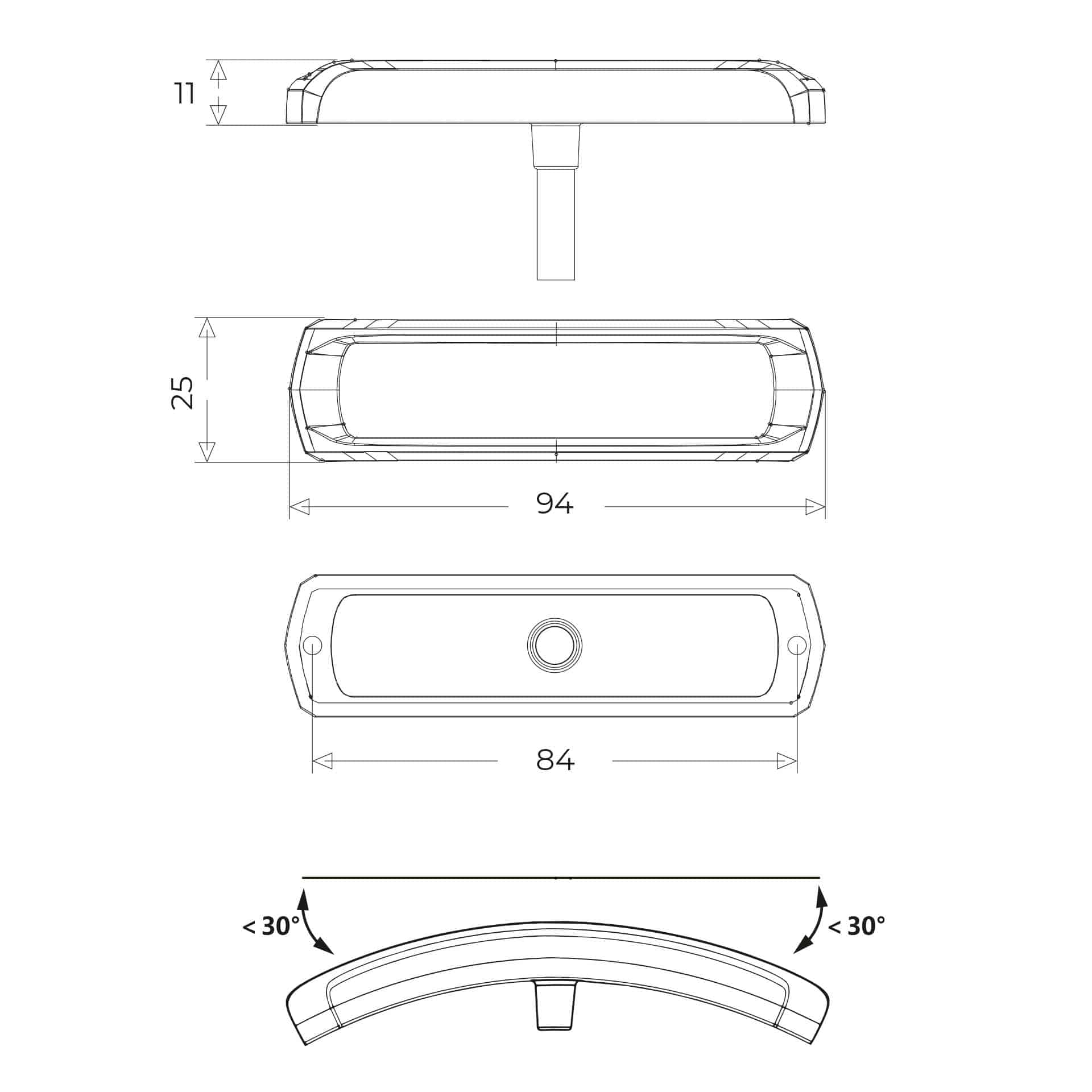 Mit den Abmessungen von 94x25x11 mm eignet sich dieser LED Blitzer für Anwendungen mit begrenztem Platzangebot. Der Blitzer wird mit 12-24 V betrieben und wird mit einem 200 cm langen Verbindungskabel mit offenem Kabelende geliefert. Die Linse ist aus stoßfestem Polycarbonat gefertigt. Dieses Modell erfüllt die Zertifizierungen CE, ECE-R10 und ECE-R65 Klasse 2 und hat die Schutzklasse IP69K, wodurch es für intensive Umgebungen im Transport-, Notfall- und Bauverkehr geeignet ist.
