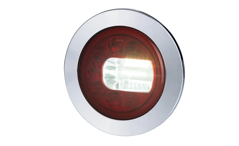 Dieses Rücklicht kombiniert die Funktionen: Nebelscheinwerfer und Rückfahrlicht. Das Gehäuse und die Linse sind aus Polycarbonat gefertigt, was zu einer stoßfesten Konstruktion beiträgt. Dieses Modell erfüllt die IP68-Normen und ist nach den Richtlinien CE, ECE-R10, ECE-R23 und ECE-R38 zertifiziert, was einen zuverlässigen Betrieb unter verschiedenen Bedingungen ermöglicht.