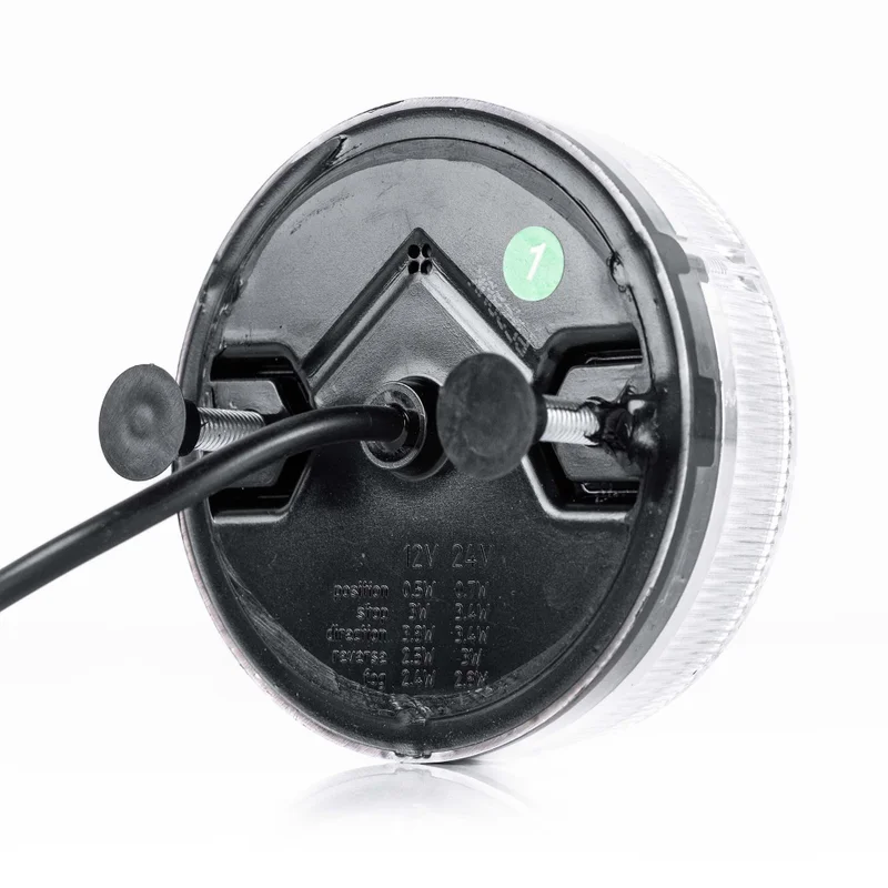 Das SIM-SA VC-5410 gehört zur VC-5400 serie und wurde als LED Rücklicht für Fahrzeuge mit einem Bordnetz von 12-24 V entwickelt. Dank seiner kompakten runden Bauform mit einem Durchmesser von 90 mm und einer Einbautiefe von 32 mm eignet sich dieses Modell für Anwendungen, bei denen nur wenig Einbauraum zur Verfügung steht. Dieses Rücklicht kombiniert die Funktionen: Rückfahrlicht und Reflektor.