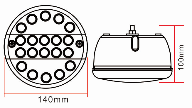 Dieses LED Rücklicht aus der 140-serie von TRALERT® ist für den Einsatz an Fahrzeugen mit einem 12-24 V-Bordnetz konzipiert. Dank seiner runden Form von ø140 x 100 mm und der Verwendung langlebiger Materialien wie einem ABS-Gehäuse und einer Polycarbonat-Linse ist es für die Montage unter verschiedenen Bedingungen geeignet. Dieses Rücklicht kombiniert die Funktionen: Rücklicht, Bremslicht und Blinklicht. Die Aufbaumontage erfolgt über Schiebestecker.
