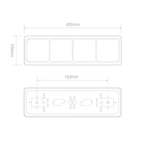 Die Abmessungen von 430x125x50 mm und die Anschlussmethode über ein 40 cm langes Kabel mit offenem Kabelende machen die Integration in bestehende Systeme einfach. Dieses Rücklicht kombiniert die Funktionen: Rücklicht, Bremslicht und Blinklicht und verfügt über einen eingebauten Reflektor. Das Produkt entspricht den Zertifizierungen CE, ECE R6, ECE R7 und ECE R10.