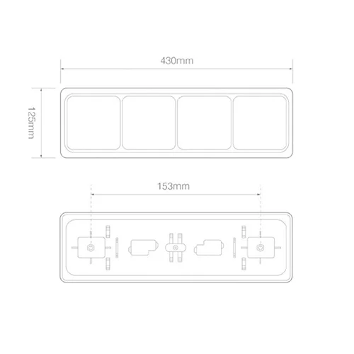 Aufbaumontage und das offene Kabelende mit 40 cm Kabellänge ermöglichen einen direkten Anschluss. Mit Abmessungen von 430x125x50 mm passt dieses Rücklicht gut in bestehende Einbaumuster. Das Gehäuse besteht aus hochschlagfestem ABS und verfügt über eine Linse aus Acryl. Dieses Modell entspricht den internationalen Zulassungen wie CE, ECE-R10, ECE-R7, ECE-R6, ECE-R38 und ECE-R23 und ist staub- und wasserdicht nach IP67.