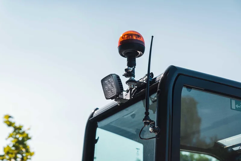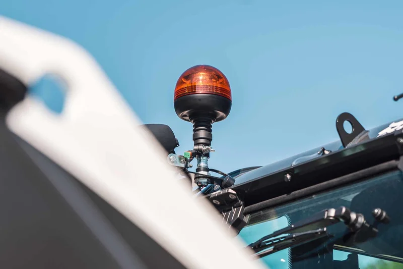 Mit der Schutzart IP56 bietet diese Rundumleuchte Schutz vor Staub und starkem Strahlwasser. Die Konformität mit CE, ECE R10 und ECE R65 stellt sicher, dass das Produkt elektromagnetisch verträglich ist und die Anforderungen für optische Warnsysteme in der Europäischen Union erfüllt. Die Abmessungen betragen ø129 x 208 mm.