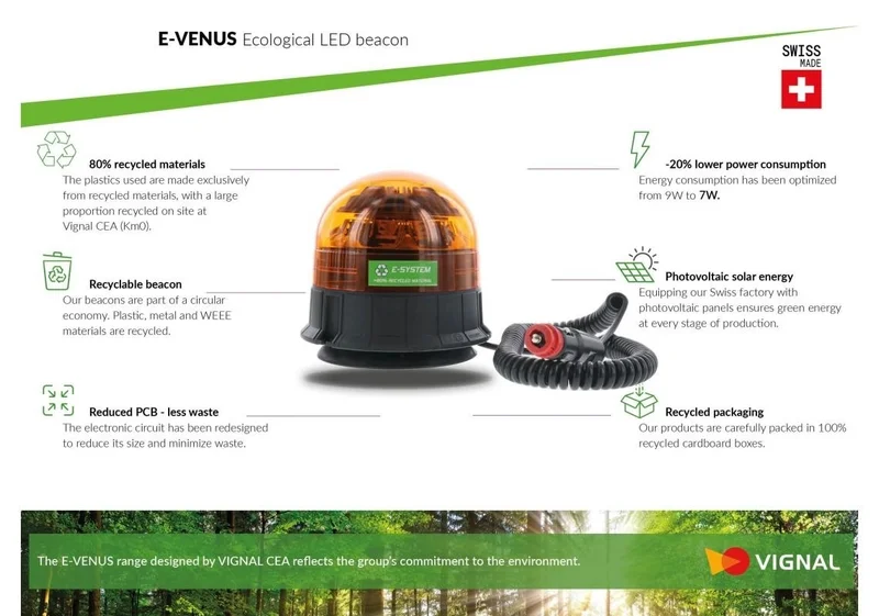 Das Gehäuse und die Linse sind aus stoßfestem Polycarbonat gefertigt. Die LED Rundumleuchte hat eine Anwendungsspannung von 10-30 V und eine Leistungsaufnahme von 025 W. Die Abmessungen sind ø143 x 137 mm. Dieses Modell erfüllt die Anforderungen von CE, ECE R10 und ECE R65. Es wird eine Garantie von 2 Jahren gewährt.