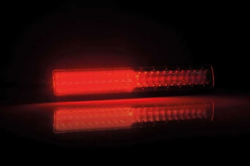 Das Fristom VMR-4700 aus der VC-4700 serie ist ein kompaktes LED Rücklicht, das für den Einsatz an Fahrzeugen im Spannungsbereich von 12-24 V konzipiert ist. Dieses Modell kombiniert die Funktionen Nebelscheinwerfer und Rückfahrlicht. Darüber hinaus verfügt es über einen integrierten Reflektor für zusätzliche Sichtbarkeit.