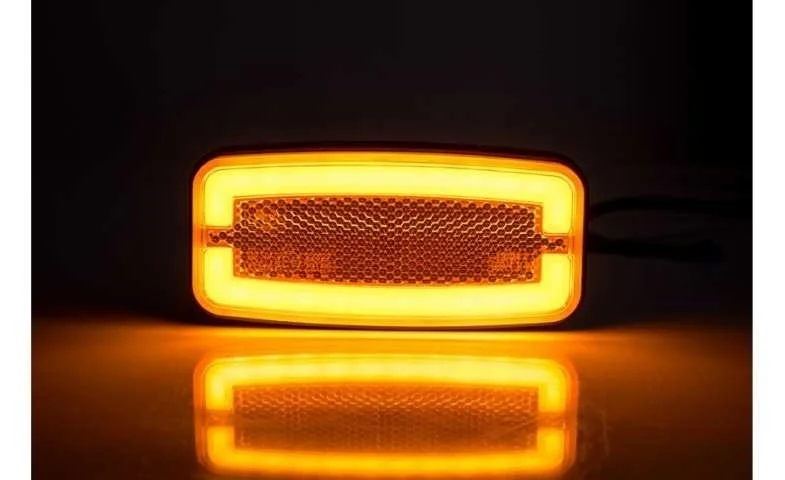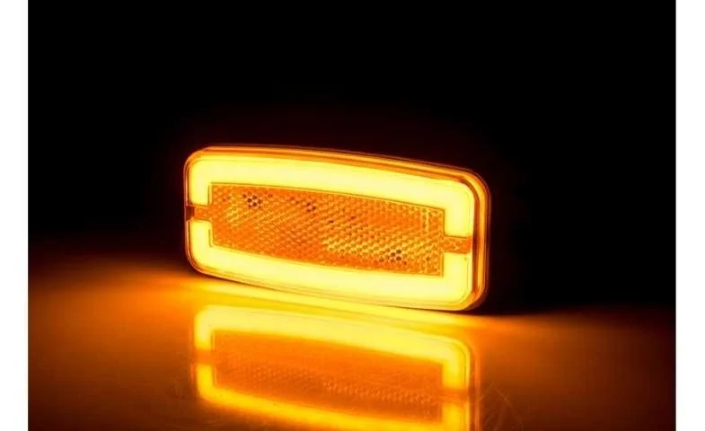 Diese amberfarbene LED Umrissleuchte aus der MV-4900 serie Horpol ist für den Einsatz als Seitenmarkierungsleuchte mit integriertem Reflektor konzipiert. Durch ihre kompakte Größe von 111 x 52 x 20,5 mm und die Aufbaumontage eignet sie sich für die Montage an verschiedenen Arten von Nutzfahrzeugen. Das Gehäuse und die Linse sind aus Polycarbonat gefertigt, was das Produkt widerstandsfähig gegen mechanische Beanspruchung und Feuchtigkeit macht. Die Beleuchtung arbeitet in einem Spannungsbereich von 12-24 V und verfügt über ein 50 cm langes Verbindungskabel mit offenem Kabelende. Die IP68-Einstufung garantiert Staub- und Wasserfestigkeit beim Untertauchen. Außerdem ist diese LED Positionsleuchte CE-gekennzeichnet und nach den Normen ECE R10, ECE R3 und ECE R91 zugelassen.