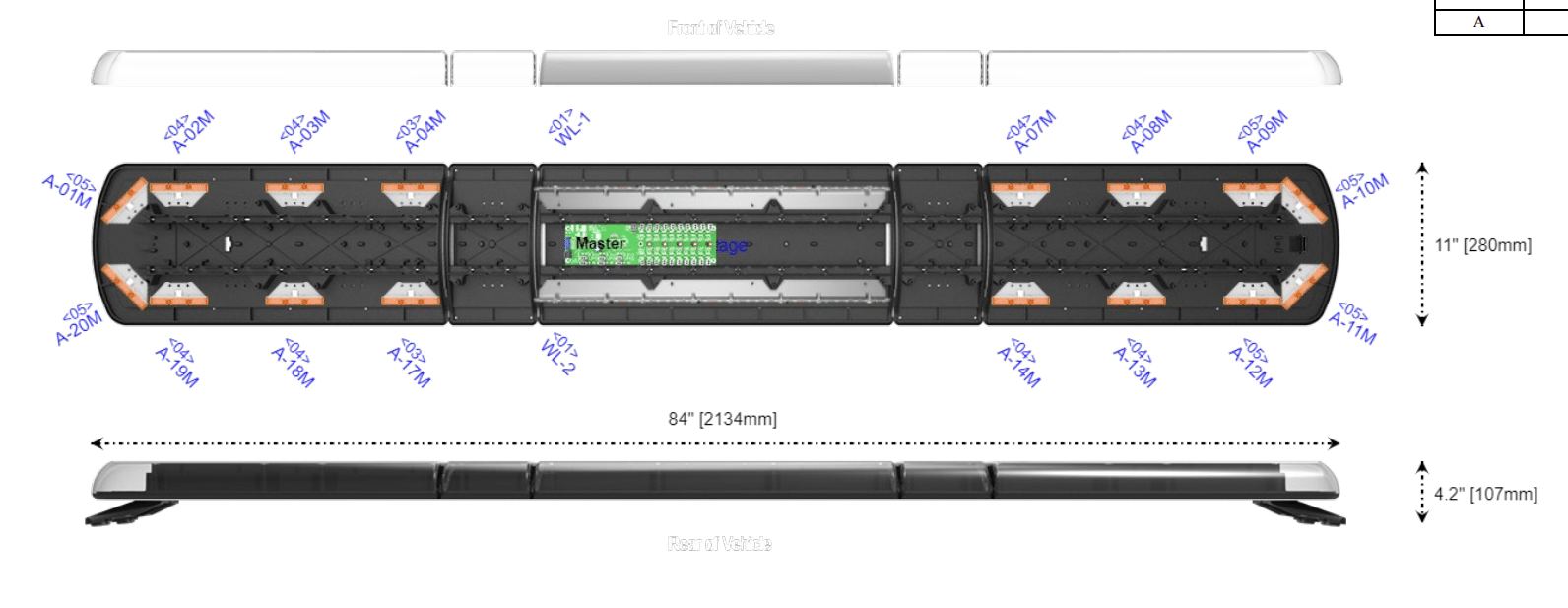 LED-Warnbalken amber | 12 Serien | ECE-R65 amber | transparent weiß Mitte | 2133mm | 12-30995-E