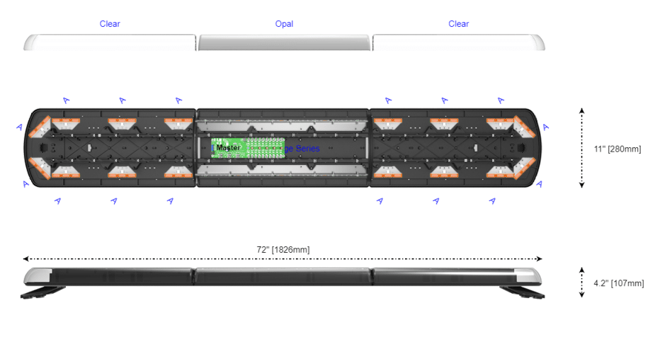 LED-Warnbalken amber | 12 Serien | ECE-R65 amber | weißes Zentrum | 1828mm | 12-30993-E