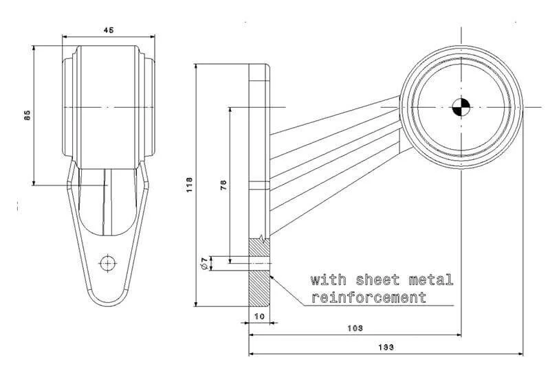 Links | LED Begrenzungsleuchte | abgewinkelter Griff | 12-24v | 0,75mm². Stecker | M10BV-311RW