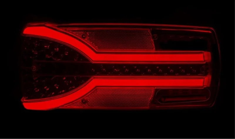 Dieses LED Rücklicht aus der Carmen serie Horpol ist für den Einsatz an Nutzfahrzeugen und Lkw konzipiert. Das Modell verfügt über eine Aufbaumontage und einen AMP-Stecker 7-PIN und 30 cm Verbindungskabel, was die Installation vereinfacht. Das Gehäuse und die Linse sind aus Polycarbonat gefertigt und bieten einen robusten Schutz gegen äußere Einflüsse. Mit der Schutzklasse IP68 ist das Rücklicht vollständig staubdicht und resistent gegen langes Untertauchen. Dieses LED Rücklicht kombiniert die Funktionen: Rücklicht, Bremslicht, Blinklicht, dynamisches Blinklicht, Nebelscheinwerfer, Rückfahrlicht und Kennzeichenbeleuchtung. Das Produkt entspricht den Richtlinien CE, ECE-R10, ECE-R3, ECE-R7, ECE-R6, ECE-R23, ECE-R38 und ECE-R4 für die Verwendung auf öffentlichen Straßen.