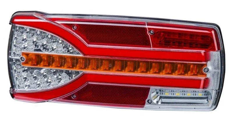 Dieses LED Rücklicht kombiniert die Funktionen: Rücklicht, Bremslicht, Blinklicht, dynamisches Blinklicht, Nebelscheinwerfer, Rückfahrlicht und Kennzeichenbeleuchtung. Die Leuchte erfüllt mehrere Zertifizierungen, darunter ECE-R10, ECE-R3, ECE-R6, ECE-R7, ECE-R23 und ECE-R38, und ist vollständig staub- und wasserdicht nach IP68.