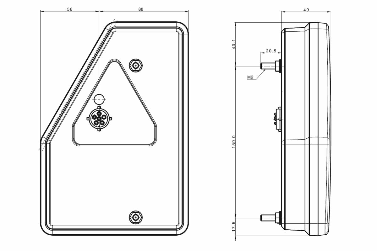 Rechts | LED Rücklicht Dreieck | 12v | 6-function | 6-PIN | VC-3302B6