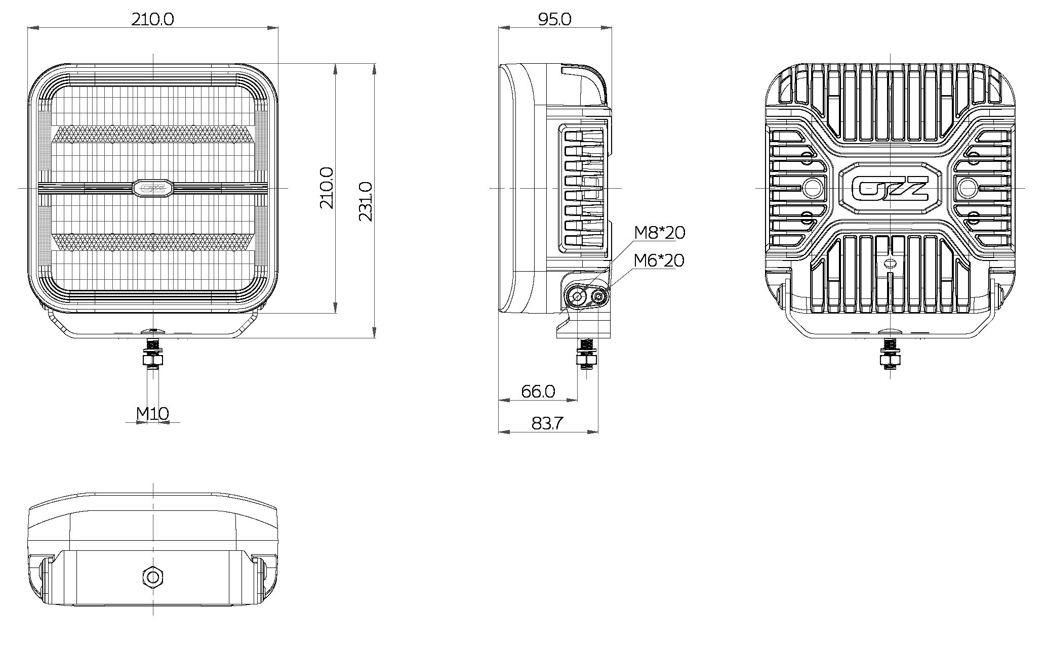 Die OZZ SQR Serie von LED Fernscheinwerfern wurde für Anwendungen entwickelt, bei denen eine hohe Lichtleistung und Langlebigkeit erforderlich sind, wie z.B. in der Landwirtschaft, der Industrie und im Automobilsektor. Dieser LED Fernscheinwerfer liefert eine Lichtleistung von 21.000 lm bei einem Verbrauch von 150 W und ist für einen Spannungsbereich von 9-36 V geeignet. Die Lichtfunktion des Fernlichts in Kombination mit amberfarbigem und weißem Licht macht diesen Fernscheinwerfer für verschiedene Arbeitsbedingungen oder Signalzwecke geeignet.