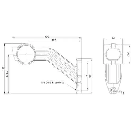 Rechts | LED Begrenzungsleuchte mit abgewinkeltem Griff | 12-24v | 1,5mm². Stecker | M10BV-722RWA