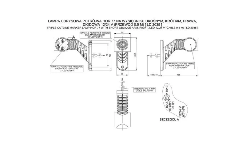 Die Horpol MB-4762RWA aus der MB-4700 serie ist eine LED Begrenzungsleuchte mit einer Kombination aus rotem, weißem und amber Licht. Diese Begrenzungsleuchte eignet sich für den Einsatz an Fahrzeugen innerhalb eines 12-24 V-Systems und verfügt über ein offenes Kabelende mit 50 cm Kabel für die direkte Montage. Das robuste Gehäuse aus Gummi und die stoßfeste Linse aus Polycarbonat machen die Lampe widerstandsfähig gegen intensive Nutzung.
