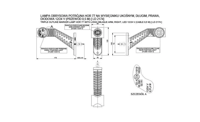 Das Gehäuse besteht aus Gummi und ist mit einer stoßfesten Linse aus Polycarbonat ausgestattet. Die Lampe ist rundum sichtbar und mit einem 50 cm langen Verbindungskabel mit offenem Kabelende ausgestattet, das für die Aufbaumontage geeignet ist. Mit einer Größe von 175x125x55 mm ist die Lampe für verschiedene Montagepositionen geeignet. Die IP68-Klassifizierung garantiert ein hohes Maß an Staub- und Wasserbeständigkeit. Die LED Begrenzungsleuchte entspricht den Richtlinien CE, ECE-R10, ECE-R7 und ECE-R91.