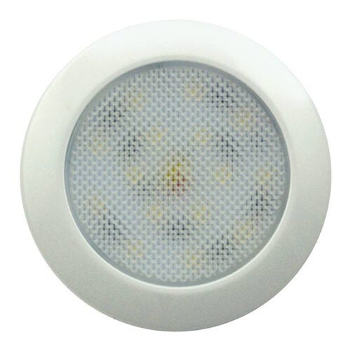Diese LED Innenbeleuchtung wird mit 24 V betrieben und liefert eine Lichtleistung von 230 lm bei einer Lichtfarbe von 6000K (kaltweiß). Das Gehäuse besteht aus ABS und ist mit einer Linse aus Polypropylen ausgestattet. Der Anschluss erfolgt über ein offenes Kabelende mit 20 cm Kabel. Die Oberflächenmontage ist dank des runden Designs mit einem Durchmesser von 76 mm einfach.